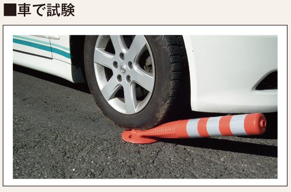 縁石の上や駐車場内の区画わけ、安全管理、注意喚起に最適です。もちろん弾力性に優れており車両踏みつけ時も車両をつけず車両通過後は復元します